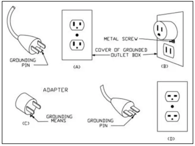 The green grounding lug extending from the adapter must be connected to a permanent ground such as a properly grounded outlet box. The adapter should not be used if a three-slot grounded receptacle is available.