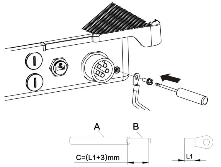 | Beware of a danger zone This symbol indicates that the inverter must be additionally grounded if additional grounding or equipotential bonding is required at the installation |