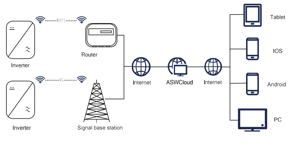 - ASW LT-G2 series inverter converts the direct current from the PV arrays into grid-compliant alternating current.