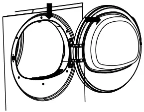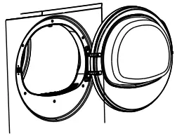 - The appliance must not be installed behind a lockable door, a sliding door or a door with a hinge on the opposite side to that of the tumble dryer, in such a way that a full openin of the tumble dryer door is restricted.