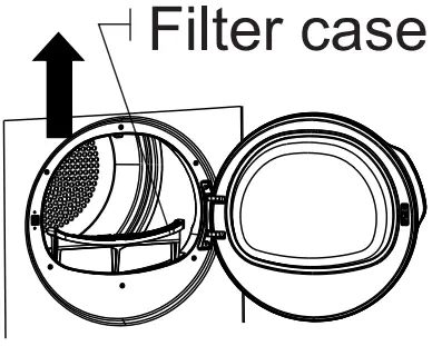 - Clean the lint accumulated on the fins of the evaporator located behind the filter drawer with a vacuum cleaner or a soft brush. You can also clean by hand provided that you wear protective gloves.