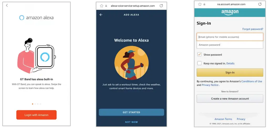 Follow the prompts on the screen, log in with your Amazon account, authorise your smart band by clicking Allow, and finish the pairing process. Finally, you can choose your preferred language setting for Alexa.