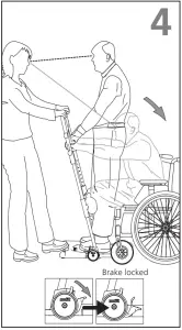 - Lock both wheels. Place a foot on the edge of the footplate before the user sits down. Counter balance while the user sits down. Maintain eye contact with the user during the entire transfer Process.