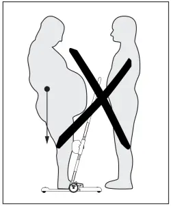 - Adjust the height of the leg support so that the top of the support is below the knee of the user