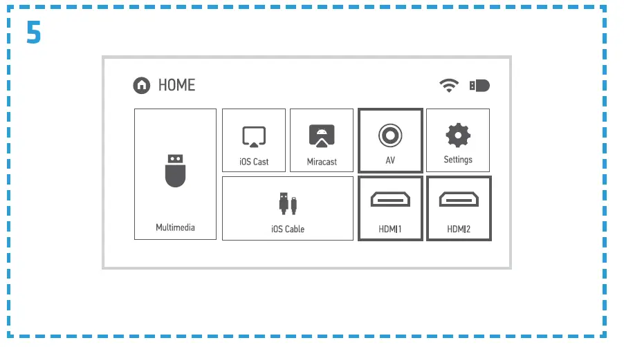Turn on the projector and then select the preferred input on the main interface (fig. 5).