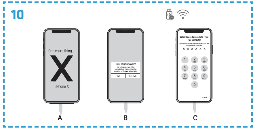- Select “Trust” in the window that appears on the iOS device screen (B, fig. 10).