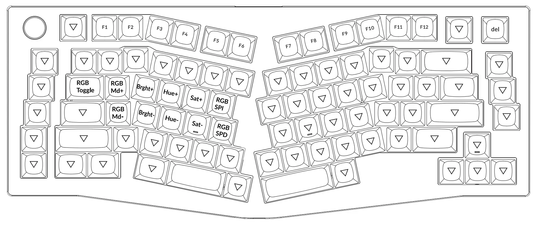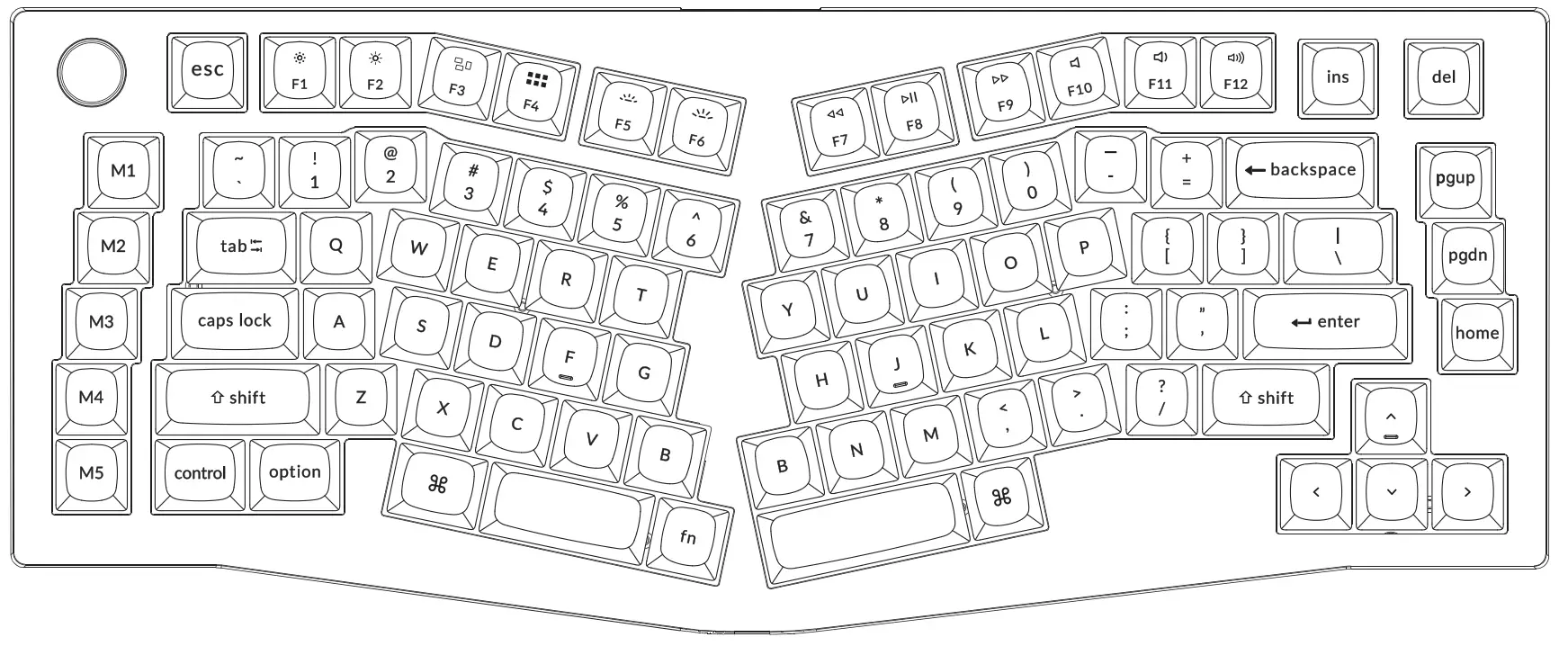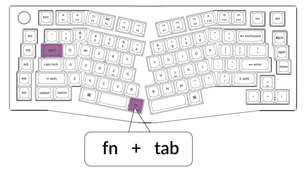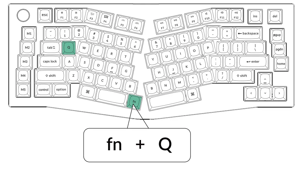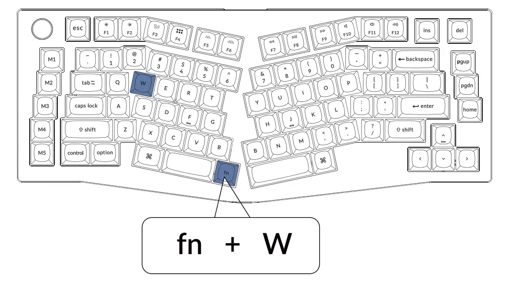 LAYER 1: This layer will be activated when your keyboard’s system toggle is switched to Mac and press the fn/MO(1) key.
