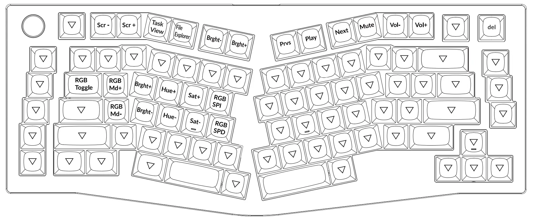 There are four layers of key settings on the keyboard. The layer O and layer 1 are for the