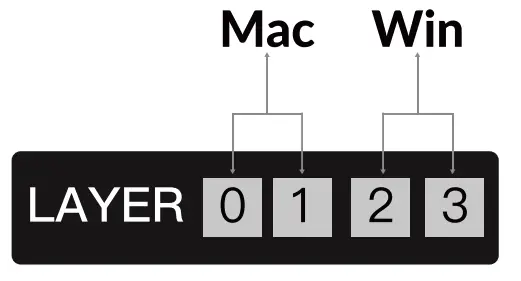LAYER 0: This layer will be activated when your keyboard’s system toggle is switched to Mac.