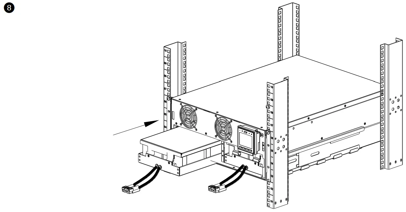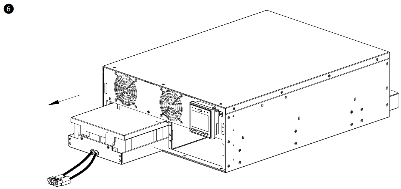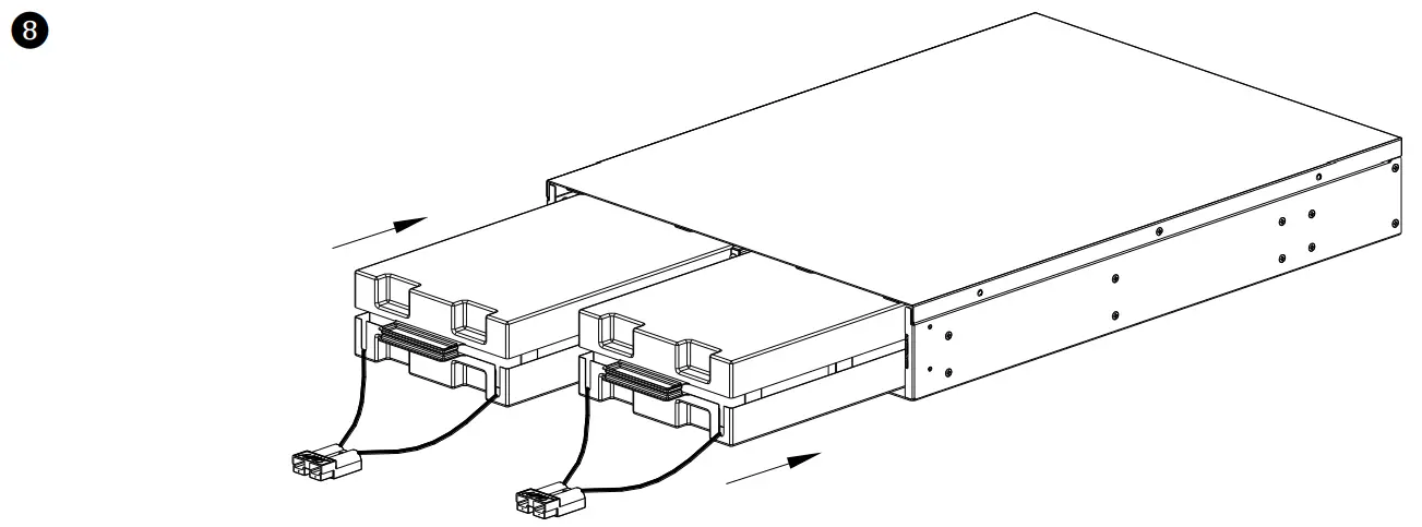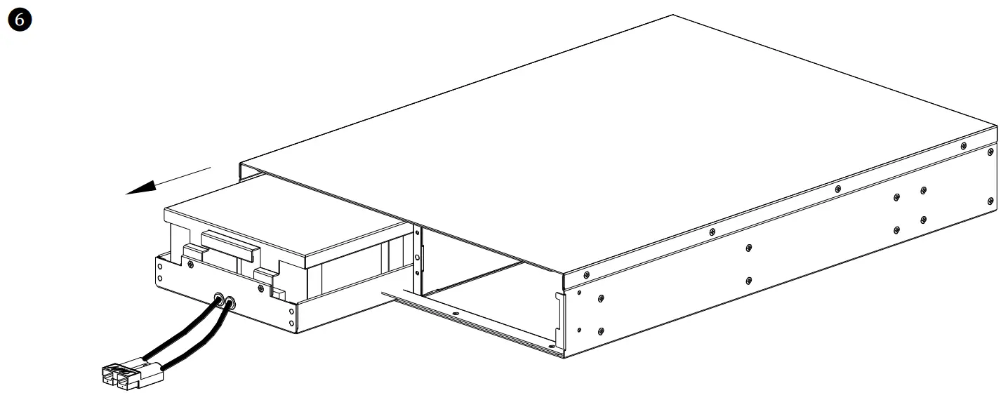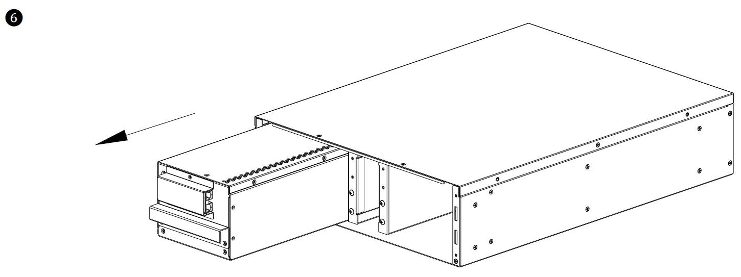 - Use the battery module handle to slide the battery modules in or out of the UPS and external battery pack (XLBP).
