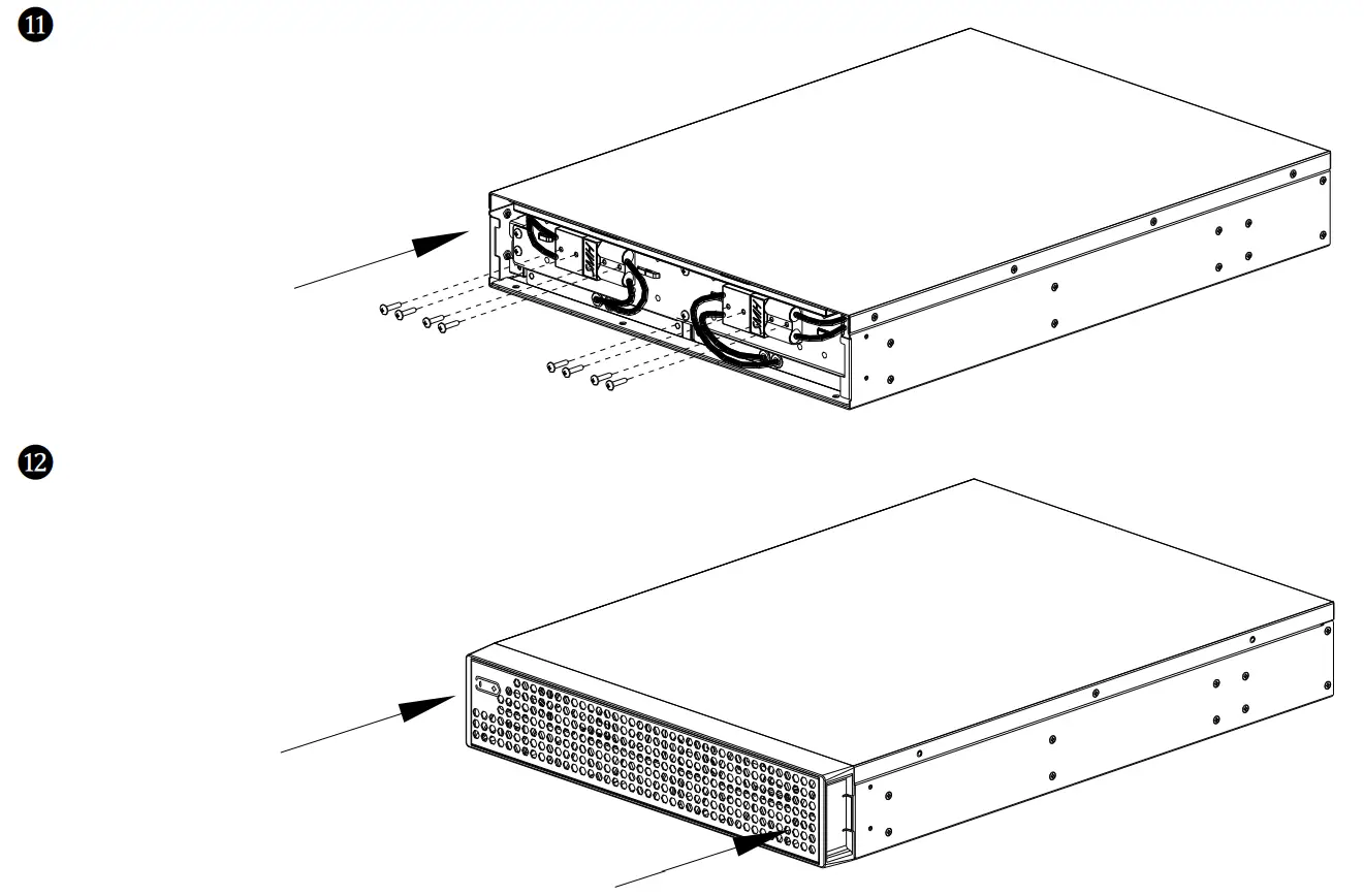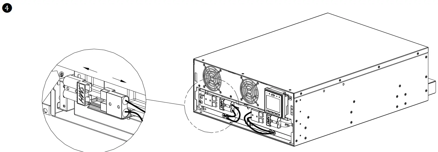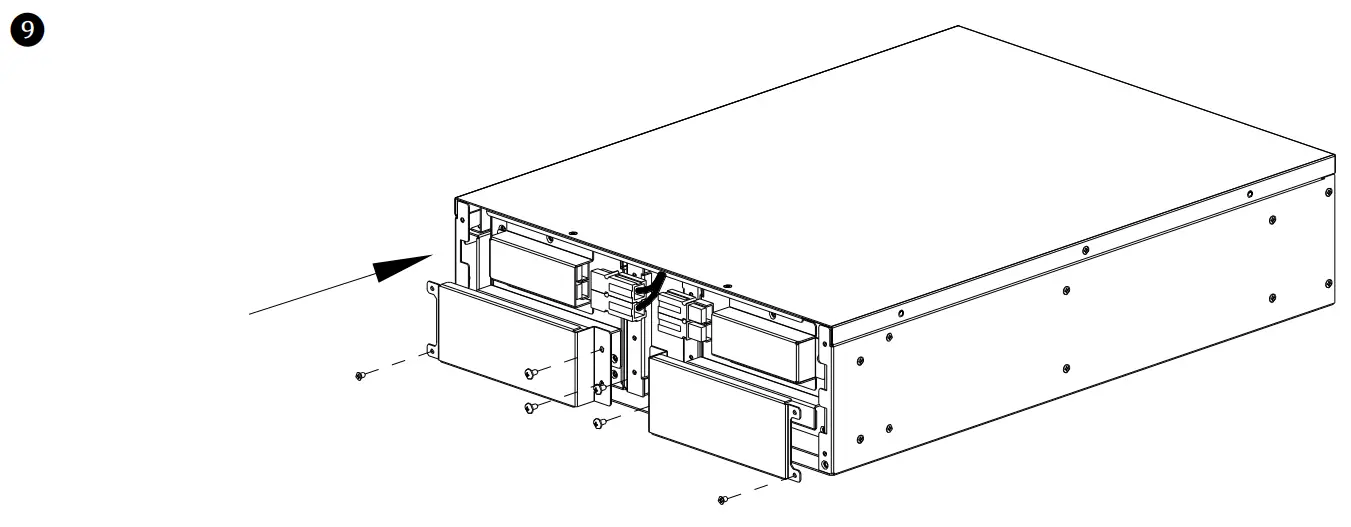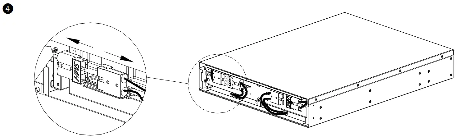 - Use the battery module handle to slide the battery modules in or out of the UPS and external battery pack (XLBP).