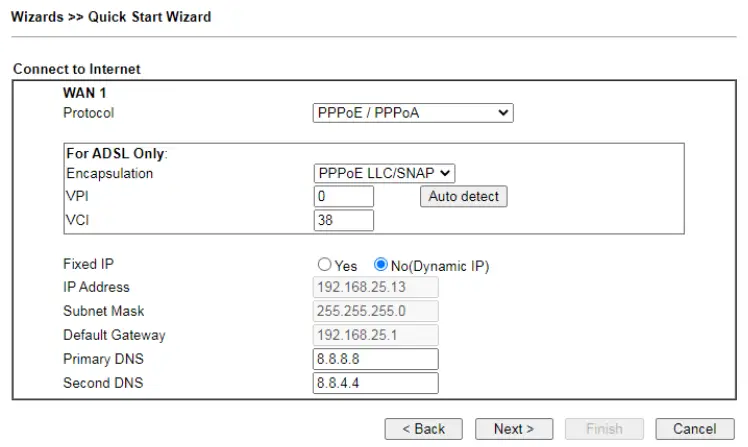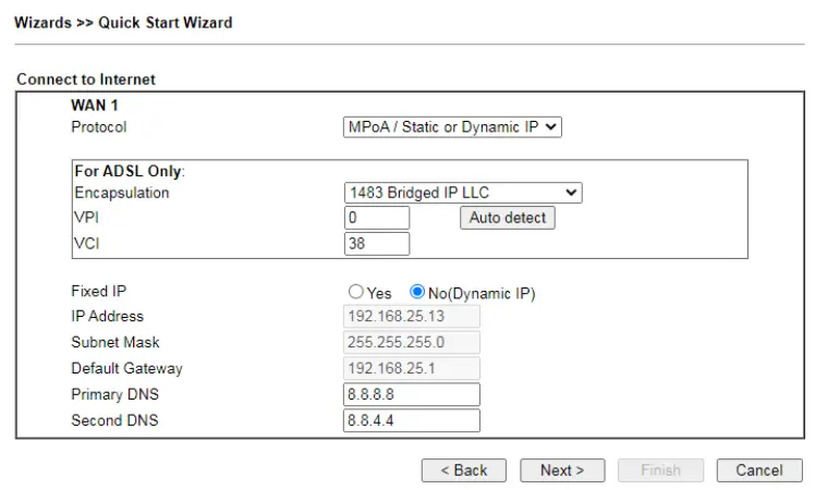- Choose WAN1 as WAN Interface and click the Next button; you will get the following page.
