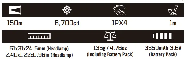 * All above specifications are test results based on ANSI/NEMA FL1-2009 Standards. The tests are performed using the 3350mAh 3.6V battery pack integrated with the product.