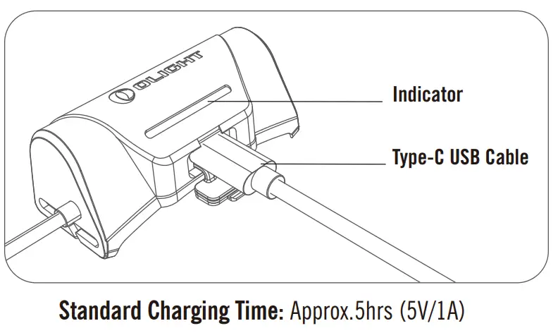 - It takes no more than 5 hours to fully charge the light (For reference only. When the USB power source is insufficient to provide 5V 1A power capacity, the charging time will be longer).