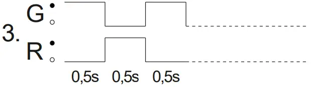 | LED indicator light colour : G = Green, R = Red; | ![]() | Blinking frequency |