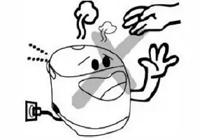 - When CXJOking, steam may come from the air If the voltage is less than 220V, the heater is outlet, so it is not allowed to close your face or unable to work normally leading to poor cooking hands to the outlet and the upper lid for avoidance of scald. performance; if the voltage is more than 220V, it may cause damage to the circuit resulting in fire or any other unforeseen accident.
