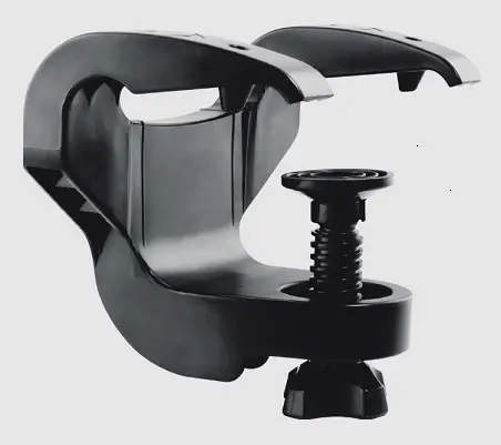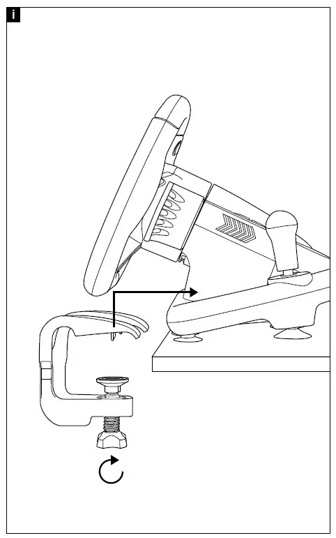 - Place the table mount onto the racing wheel as illustrated. Make sure that the arms of the table mount reach into the grooves of the racing wheel.