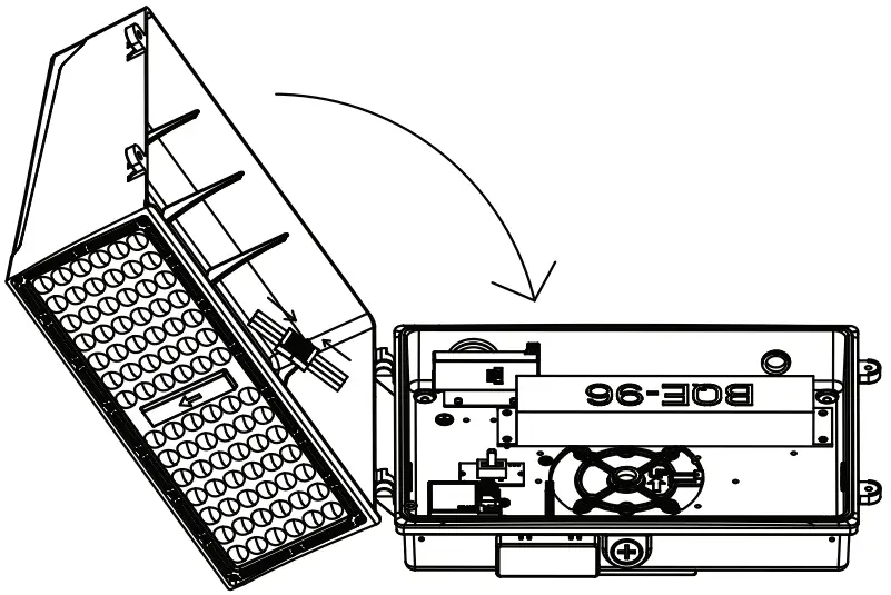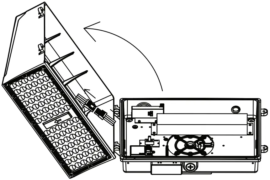 - Open the fixture and disconnect the connection terminals between the LED driver and LEDs. Remove the heatsink from the back plate.