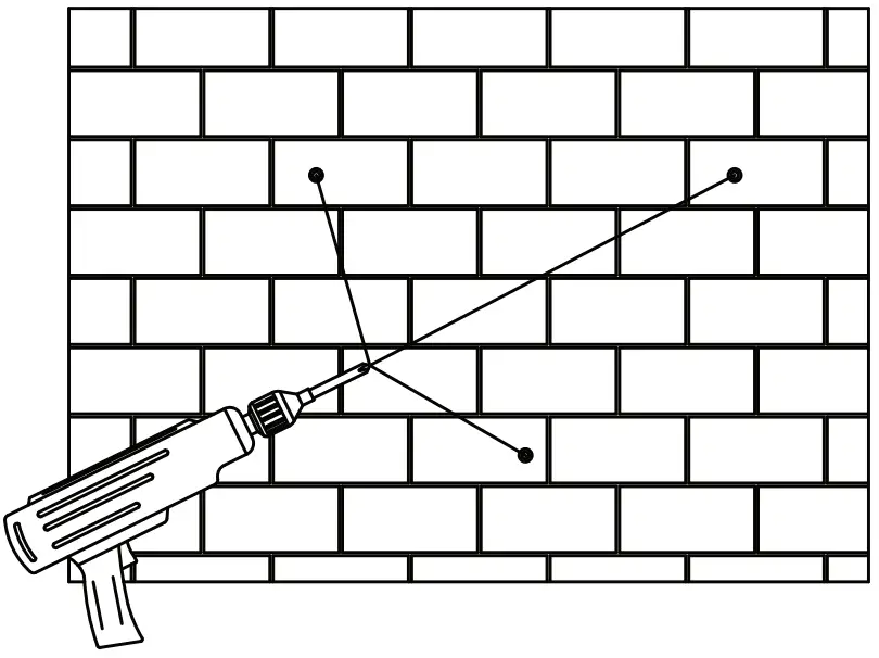 - Drill three (3) holes in the wall that match the locations of the holes drilled in step 4 when mounted.