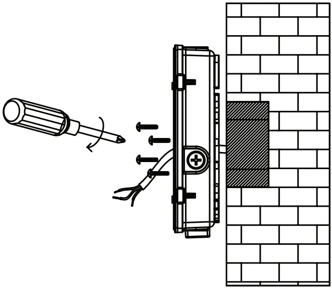 Note: Add a bead of exterior grade silicone sealant around the perimeter of the wall pack on the wall to inhibit any moisture from attachment bolts.