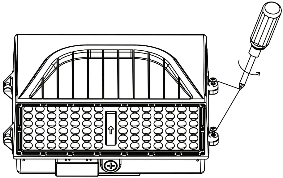 - Use a Phillips-head screwdriver to loosen the two (2) screws on the right side of the fixture.