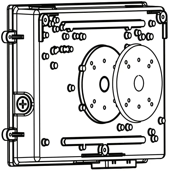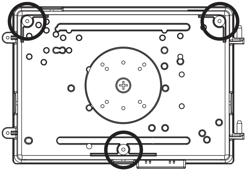 - Drill through the three (3) corner mounting holes on the back plate.