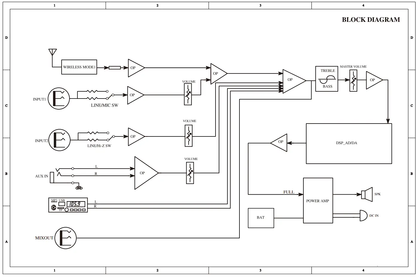 | Equalizer Controls | BASS: + 1 0dB (at 1 00Hz) / HIGH: + 1 0dBu (at 1 0KHz |