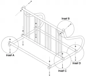 - Insert bolt through hole at the top of the leg and end of grid. (See Inset B)
