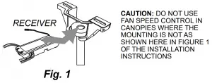 CAUTION: TO REDUCE THE RISK OF FIRE OR ELECTRIC SHOCK, DO NOT USE THE FAN WITH ANY SOLID STATE SPEED CONTROL DEVICE OR CONTROL FAN SPEED WITH A FULL RANGE DIMMER SWITCH.- Do not use this remote control with solid state ceiling fans, electrical source and fan must be 120 volts, 60 Hz. Maximum fan motor amps: 1.5; Maximum light watts: 300 incandescent Electronic ballast (LED lights or CFL lights) 300VA