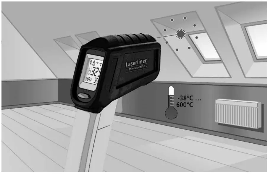 Release the button as soon as the laser circle pinpoints the measurement location. The measured value is held.