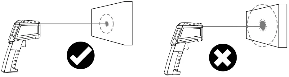 The laser circle is a targeting aid to sight the location for the infrared measurement. Temperature measurement is only performed on the surface within the laser circle. Please ensure that the space between the instrument and surface to be measured is free of disturbances (steam, gas, contamination, glass).