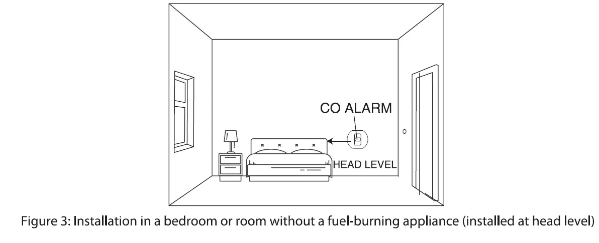 Installing the CO Alarm in a Bedroom or Room Without a Fuel-Burning Appliance (See Figure 3):