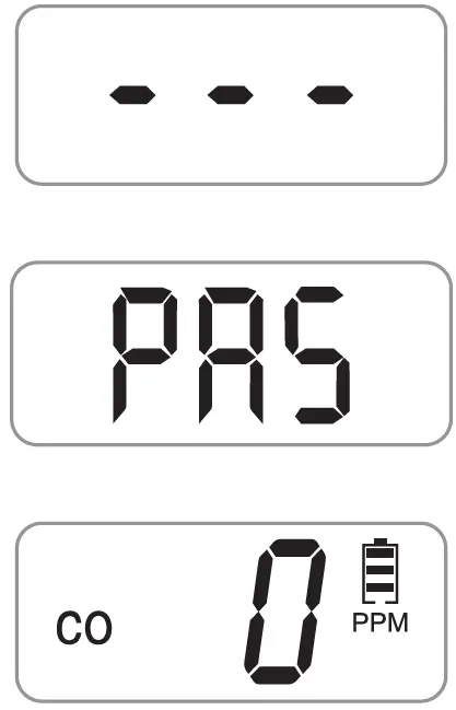 While detecting CO, the LCD will display different indicators to help you understand what to do, as shown below: