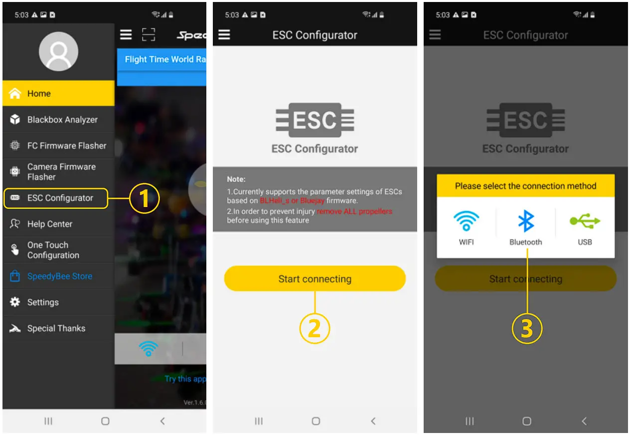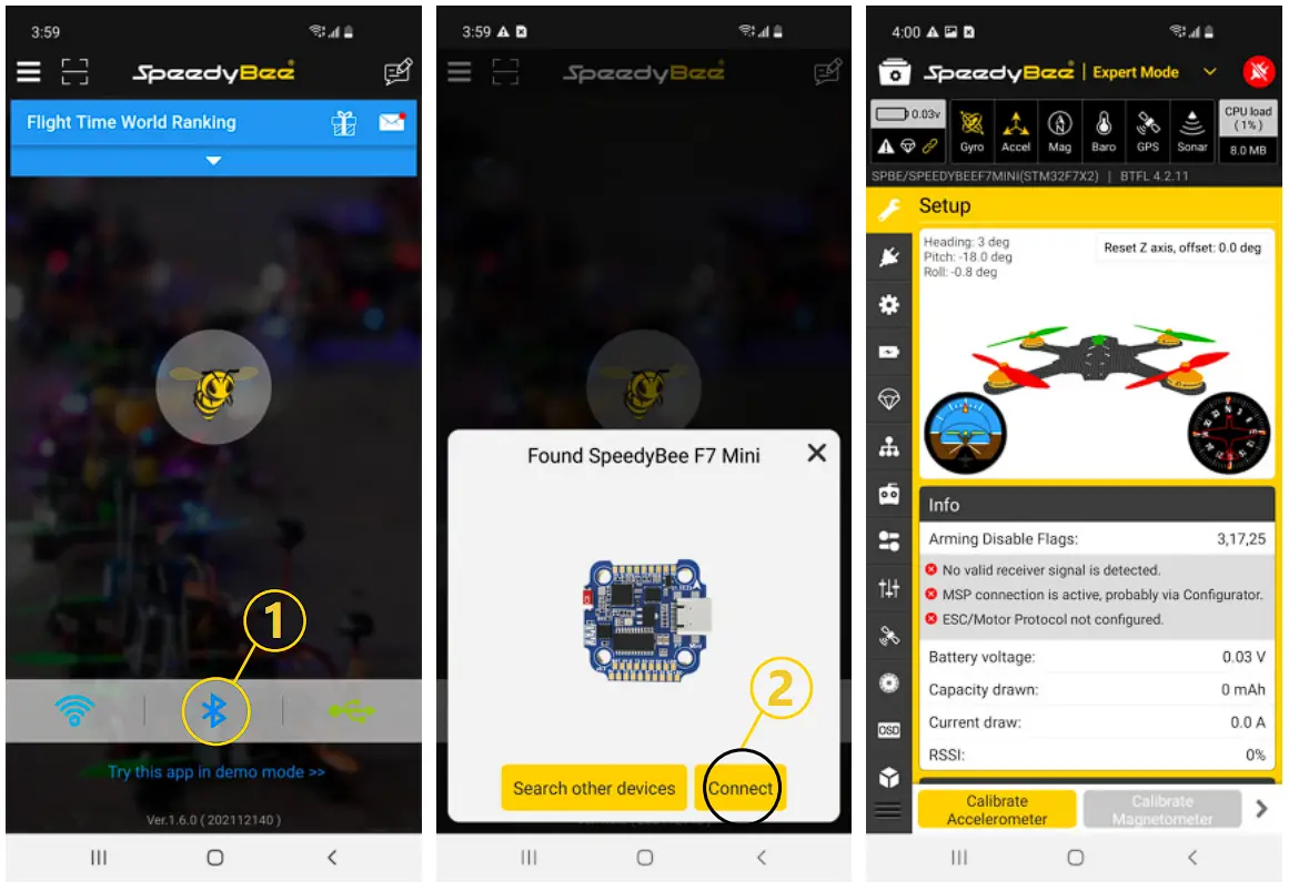 Search ‘SpeedyBee’ on Google Play or App Store. Or download the Android .apk file on our website: https://www.speedybee.com/download. - Connect the App