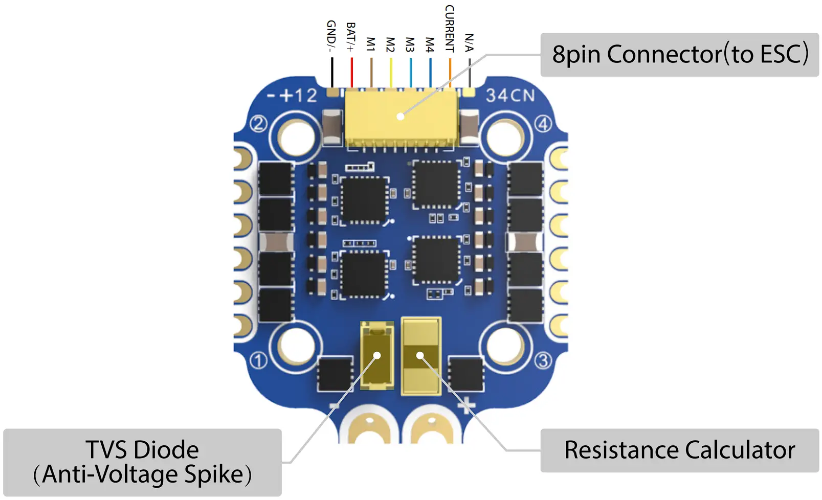 | ESC Signal Pads | M1 – M4 |
