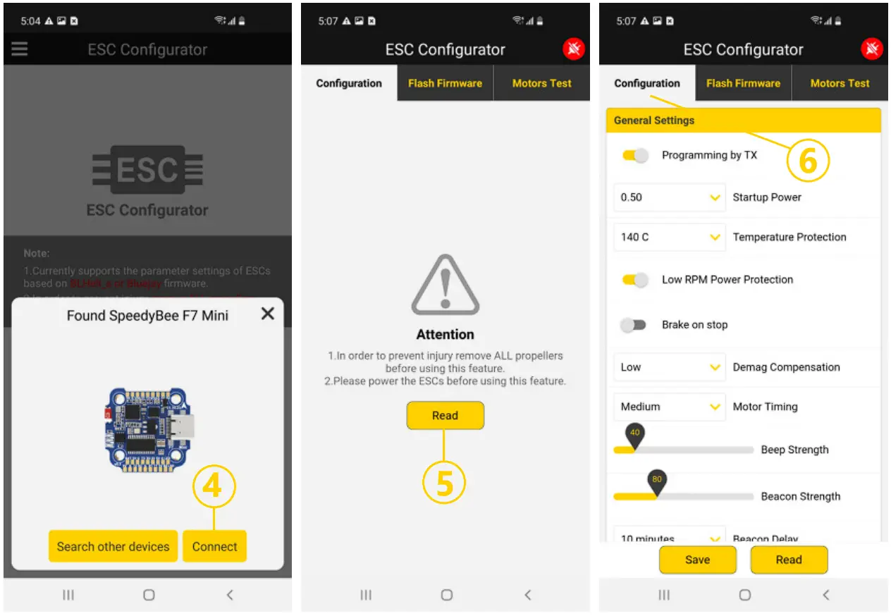 - You could flash both BLHeli_S and Blue Jay firmware for this ESC via Bluetooth.