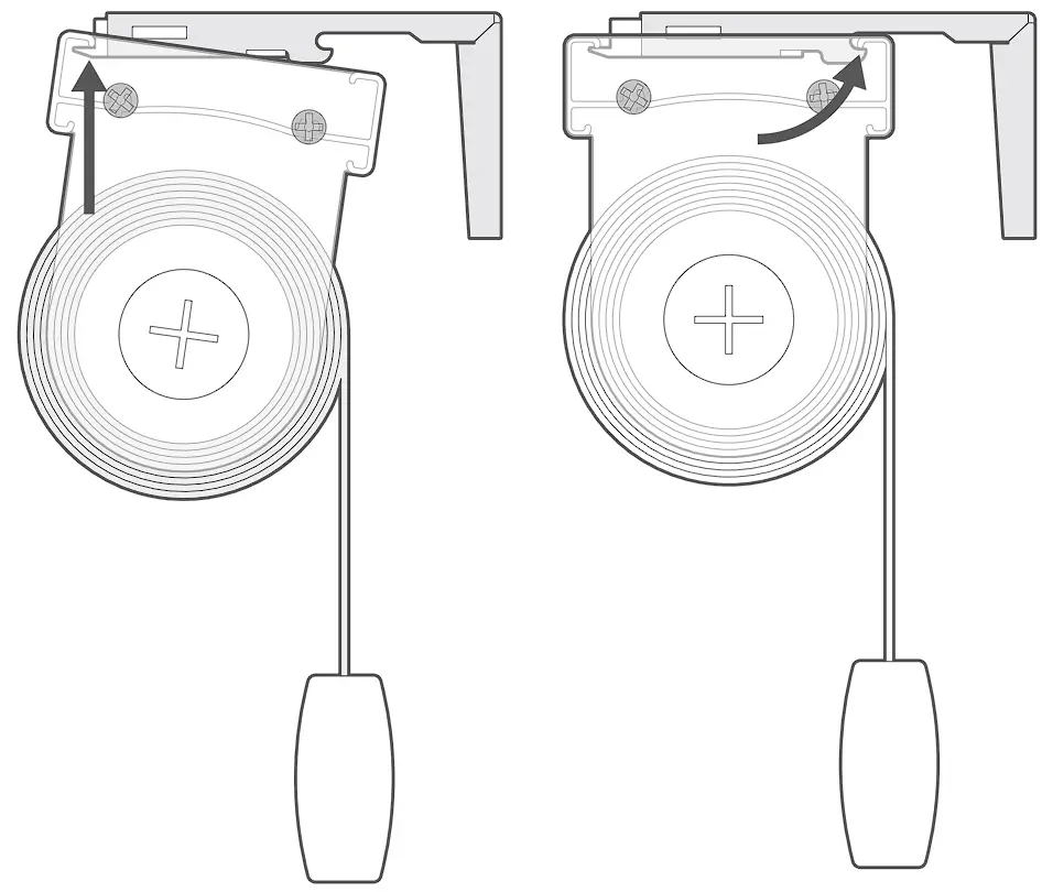 If you find that over time the spring mechanism is weakening (in that the shade does not easily retract when you raise it) then the tension can be increased very easily. Take the shade down from the brackets and locate the tension screw at one end. Using a screwdriver, turn the screw in the direction of the front of the blind. This will increase the tension in the spring and allow the blind to retract more easily. Make small adjustments (around 2 turns at a time) to avoid over-tensioning the spring mechanism.