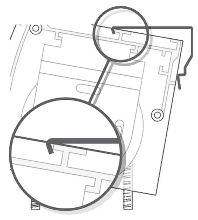 Holding the rail at an angle, situate the T-shaped lip on the top of the cassette into the front lip of the bracket.