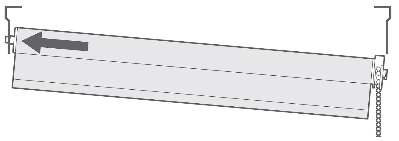 Lift the control end of the blind and slot the rectangular ‘lugs’ into the corresponding slots on the bracket.