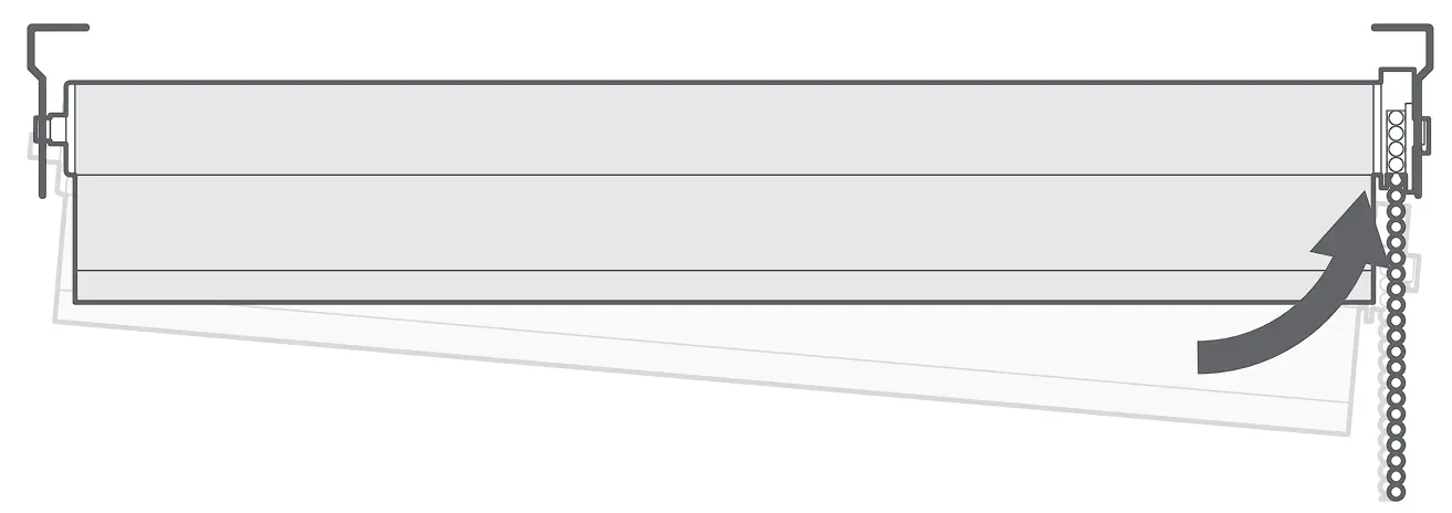 Hold the no-tools headrail up against the top of the recess, then push the lever firmly upwards until the rail snaps into place. If the rail is not quite tight enough then this can be easily adjusted: