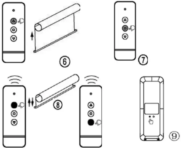 | Setup upper limit | 6 | Press UP button on transmitter | Motor runs up | ![]() |