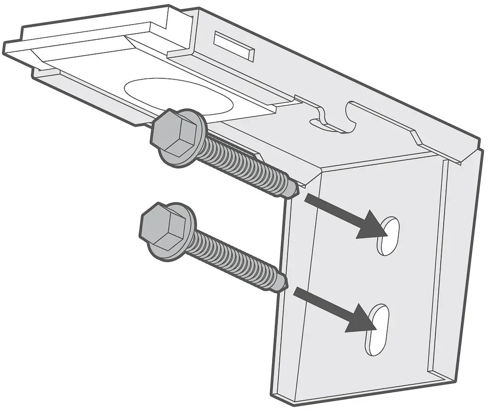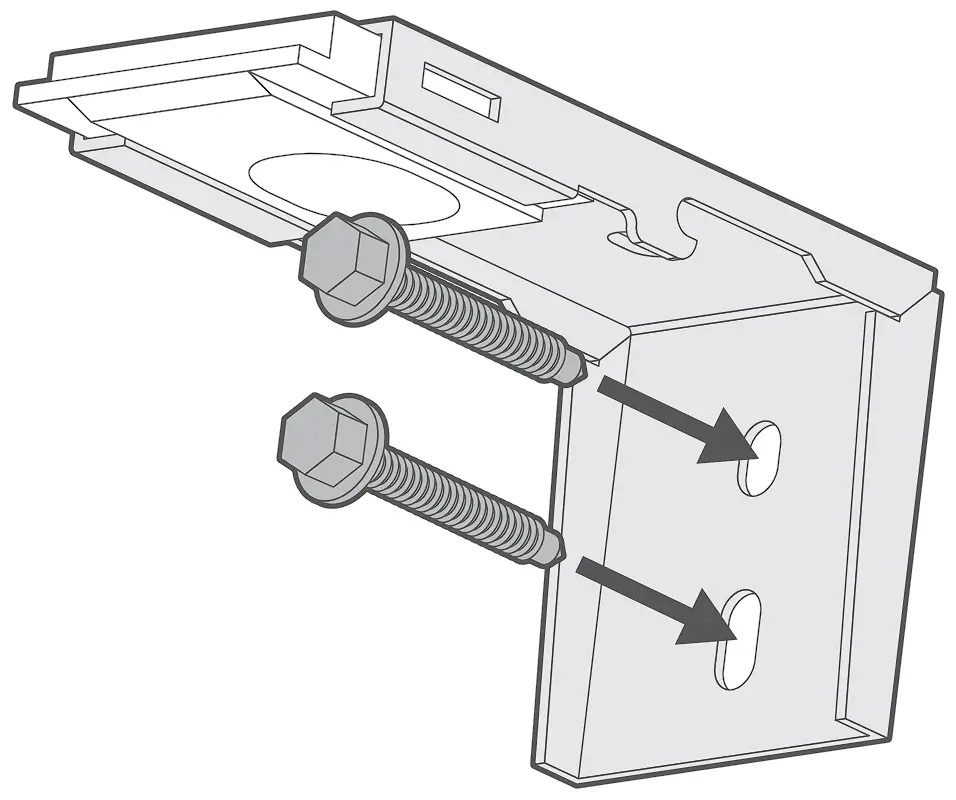 Use the front two holes in the top of the bracket to fix to the lintel (the ‘ceiling’ of the recess).