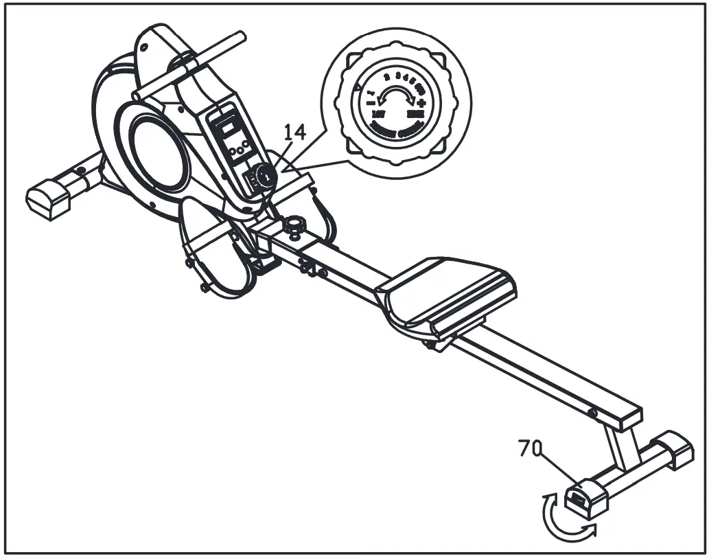 Rotate the Tension Control Knob (No.14)clockwise to increase the level of resistance. Rotate the tension control counter-clockwise to decrease the level of resistance.
