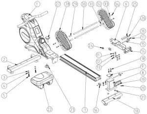 - Keep children away from the equipment unless they are supervised by an adult. It is recommended to do a warm-up first before commencing exercising on the rowing machine.