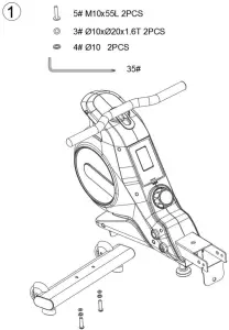 Step 1. Connect the main frame (1) and front stabilizer together, secure them with Allen bolts and washers (3,4,5).