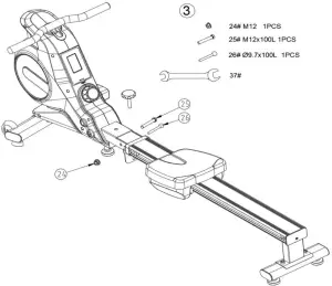 - Check all parts first before doing exercises and never operate the rowing machine if it is not functioning properly.