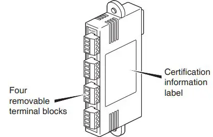 - Connect field wiring to each of the four removable input terminal blocks. All the inputs are identical as shown in Fig 3. Each of the four inputs is a separate intrinsically safe circuit and field wiring should comply with segregation requirements specified in IEC/EN 60079-14. If a multicore cable is used for the inputs, it should have Type A or B construction as specified in Clause 16.2.2.7 of IEC/EN 60079-14 Wiring should be supported to avoid damaging the module’s terminals.