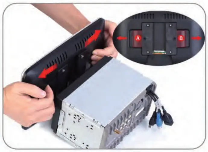 - Pull the two clips(A&B) on the back of the display to both sides.