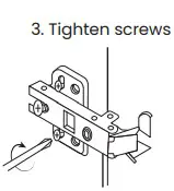 - Attach 2 metal brackets (D) to the rear top bar (4) using 16 screws (G).