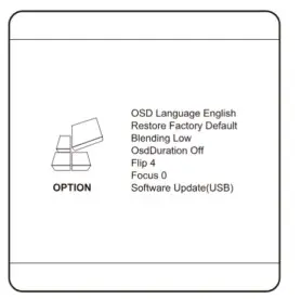 - Press the Menu Button. Press the Left/Right button to select OPTION. Choose OSD Language under OPTIO